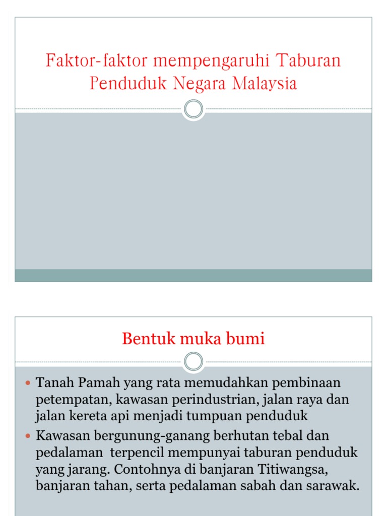 Faktor Yang Mempengaruhi Taburan Penduduk Di Malaysia