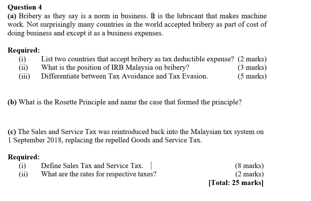 Solved Question 4 (a) Bribery as they say is a norm in Chegg.com